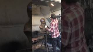 Patina In-Progress on the Noam Chomsky Bronze Bust